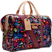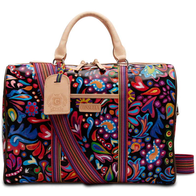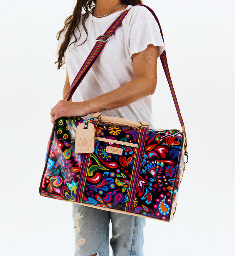 This spacious and colorful duffel is the perfect carry-on for a weekend getaway, making a statement with functionality, durability, and style. Topped with natural leather handles and an adjustable webbing strap, the Jetsetter is crafted to hold its shape and makes traveling easy with ample interior storage and functional pockets.