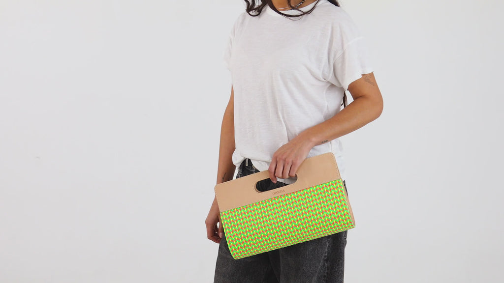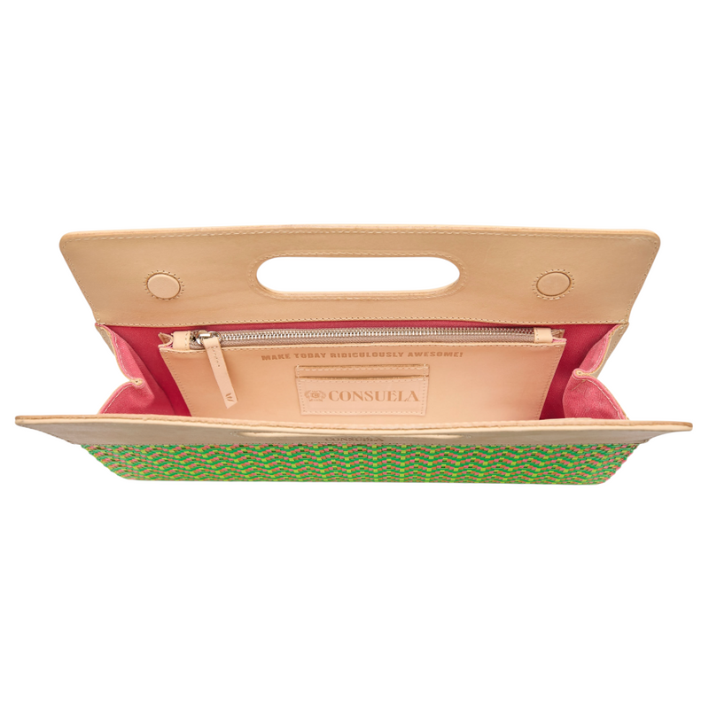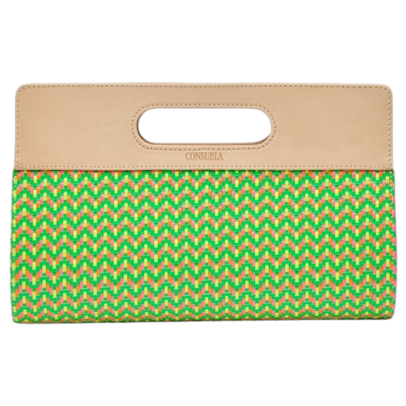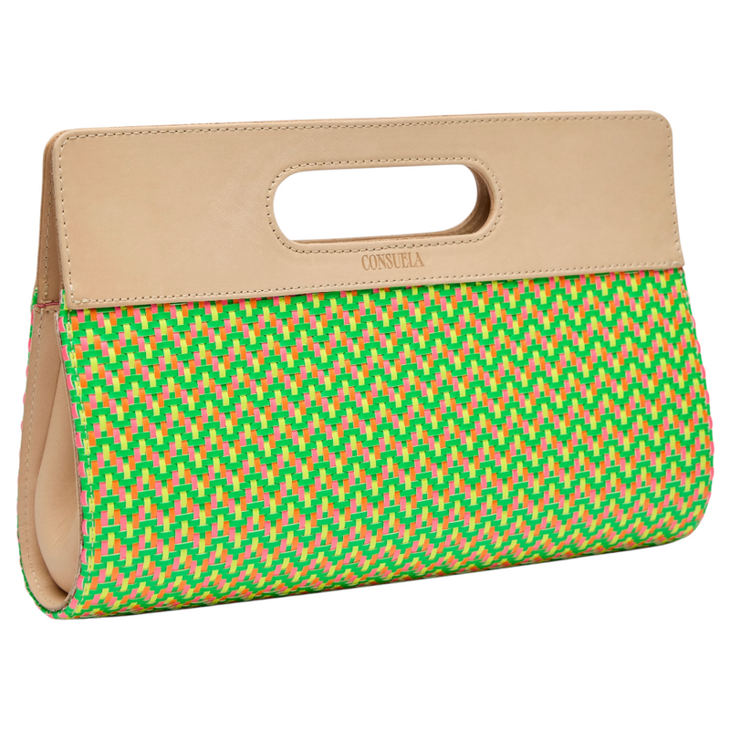Supercharge your day with our newest clutch! This Diego leather-trimmed, hand-held clutch has plenty of storage for a bold and chic style.